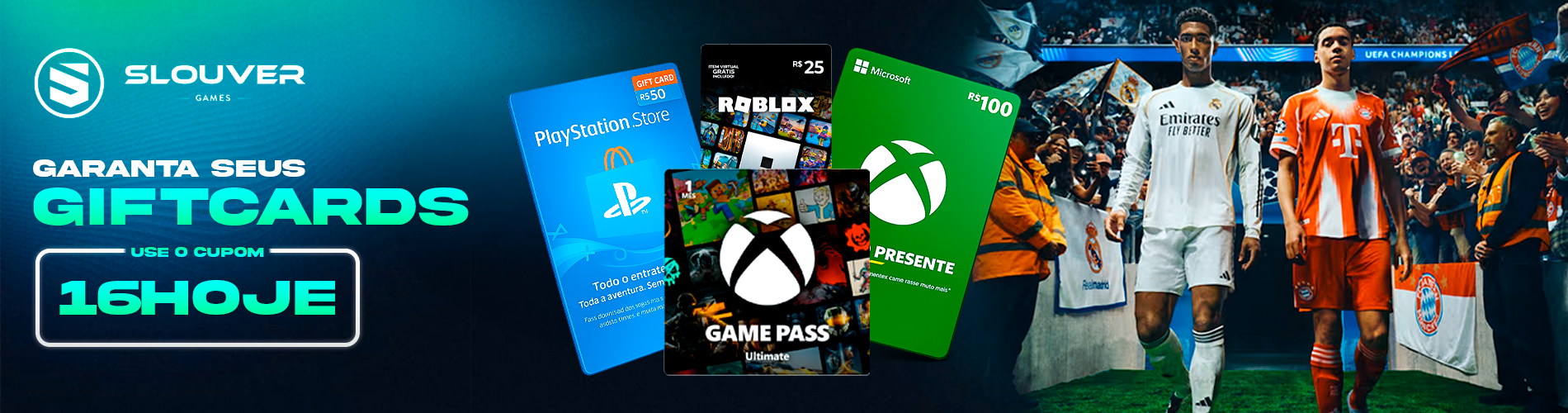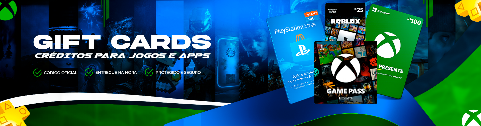 Cupons e ofertas exclusivas em diversos gift cards, jogos e créditos.